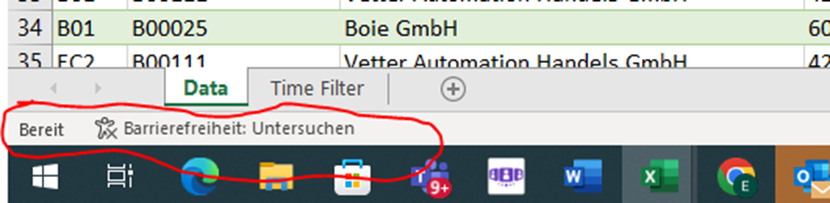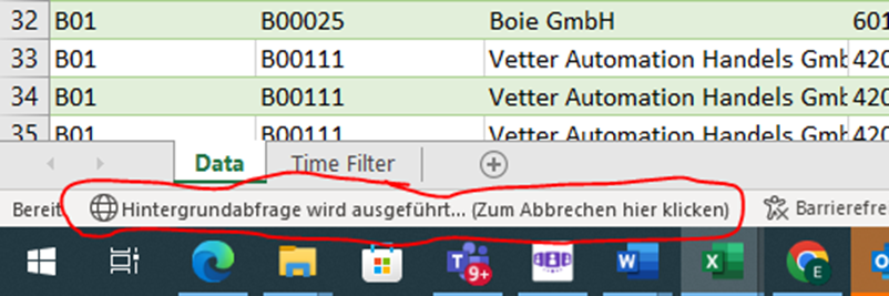 4. Im Anschluss erfolgt in der Excel Statusleiste links unten die folgende Info