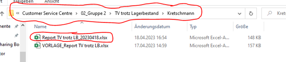 6. Abschließend die Liste unter dem jeweils eigenen Ordner (siehe u.s. Pfad) mit tagesaktuellem Datum „TV trotz LB_YYYYMMDD“ abspeichern.